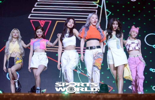 [스포츠월드 김두홍 기자]걸그룹 에버글로우(이유, 시현, 미아, 온다, 아샤, 이런)가 19일 광장동 예스24 라이브홀에서 열린 두번째 싱글 앨범 ‘HUSH’쇼케이스에서 열창하고 있다.