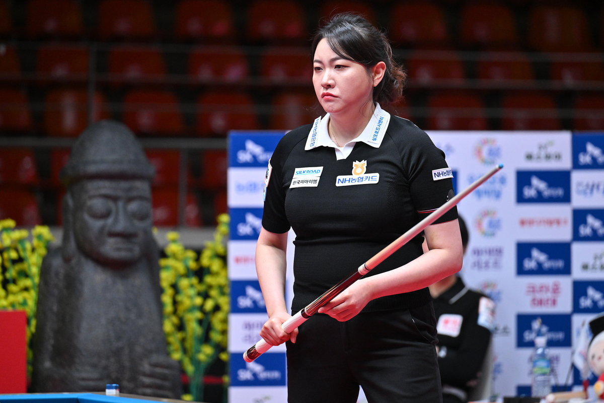 월드챔피언십에 첫 출전한 ‘신예’ 정수빈은 김민영을 상대로 2-0 완승을 거뒀다. 1세트 2이닝부터 2-3-3 연속 득점을 앞세워 8-0으로 달아난 정수빈은 7이닝째 1득점에 이어 10이닝째 남은 2점을 채우며 11-4로 1세트를 따냈다. 2세트엔 5이닝부터 4-1 연속 득점으로 5-0으로 앞서간 뒤 7이닝째 6점 장타로 11-1(7이닝)로 승리, 승부를 빠르게 끝내고 16강 티켓을 거머쥐었다.