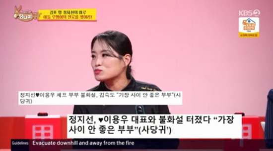 지난 30일 방송된 KBS 2TV 예능 ‘사장님 귀는 당나귀 귀’에서는 정지선이 이혼했다는 가짜뉴스를 언급하는 장면이 담겼다.