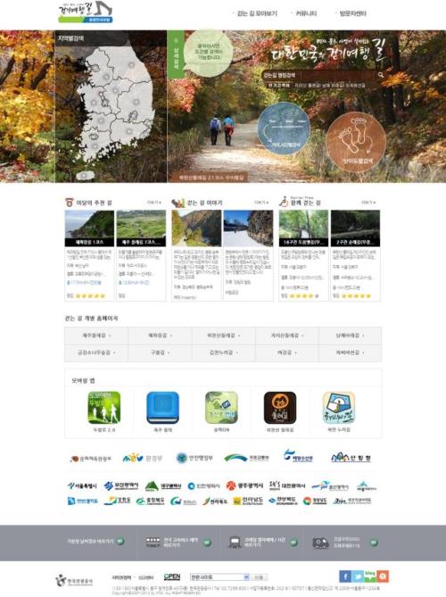 | 대한민국 걷길 홈페이지 화면. 10월 10일부터 서비스된다. |