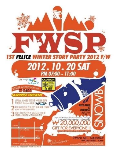 펠리체 겨울스토리 파티는 이번 시즌 처음으로 열리는 스노우보드인들 전용 파티로, 참가자들을 대상으로 총 2천 만원 상당의 경품을 제공하는 성대한 행사다. 펠리체는 이번 행사 진행을 시작으로, 매년 업그레이드 된 내용의 파티를 진행해 나갈 방침이다.