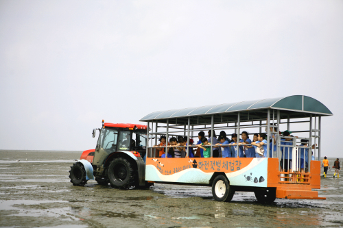 전라북도 고창군의 하전갯벌마을은 국내 최대의 바지락 생산지다. 2004년 탐방객을 맞이하기 시작한 이곳에서는 뙤약볕이 두렵지 않다. 트랙터와 연결된 갯벌버스를 타고 드넓은 갯벌 한가운데로 나가 조개도 캐고, 갯벌에 깃들어 사는 생명을 만날 수 있기 때문이다. 장화와 갈퀴 등 갯벌 체험 도구도 넉넉하게 준비되어있고, 탈의실과 샤워장까지 갖췄다.