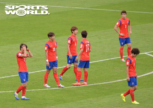 한국은 23일(한국시간) 브라질 포르투 알레그레에서 열린 2014 브라질월드컵 조별리그 H조 2차전에서 알제리에 2-4로 졌다. 이로써 한국은 1무1패(승점 1)로 H조 최하위로 떨어졌다. 16강 진출 가능성이 낮아졌지만, 최종전 결과에 따라 극적인 통과도 가능하다.