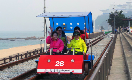 한국관광공사가 ‘안전여행 실현을 위한 국민인식 조사연구’ 결과 은답자 61%가 국내여행을 안전하다고 인식한 것으로 조사됐다. 관광객들이 정동진 레일바이크를 타며 즐거워하고 있다. 스포츠월드DB