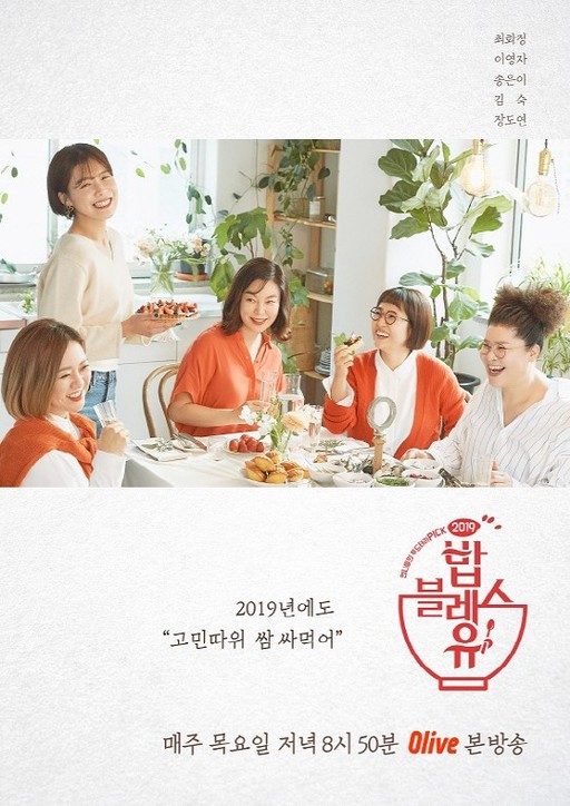 Olive ‘밥블레스유’는 팟캐스트 ‘송은이, 김숙의 비밀보장’의 컬래버레이션으로 최화정, 이영자, 송은이, 김숙, 장도연이 출연한다. 전국에서 배달된 ‘애매하고 사소한 생활 밀착형 고민’을 언니들의 방식으로 함께 공감하고 ‘맞춤형 음식’으로 위로해주는 예능 프로그램. 지난해 8월 첫 방송을 시작하 이후 ‘밥블레스유’ ‘밥블레스유 F/W’, 현재 방영 중인 ‘밥블레스유 2019’까지 인기리에 방영 중이다. 지난해 10월에는 게스트로 배우 정해인이 출연해 화제를 모은 바 있다.