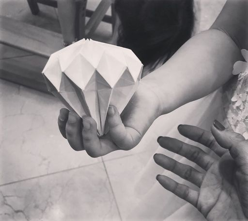 공개된 사진 속에는 박솔미가 직접 접은 종이 다이아몬드가 담겨있다.