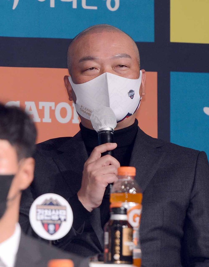 프로축구 김천 상무 김태완 감독이 14일 효창동 백범김구기념관에서 열린 '하나원큐 K-리그 2022 개막 미디어데이'에서 출사표를 던지고 있다. 사진=김두홍 기자 kimdh@sportsworldi.com 2022.02.14.