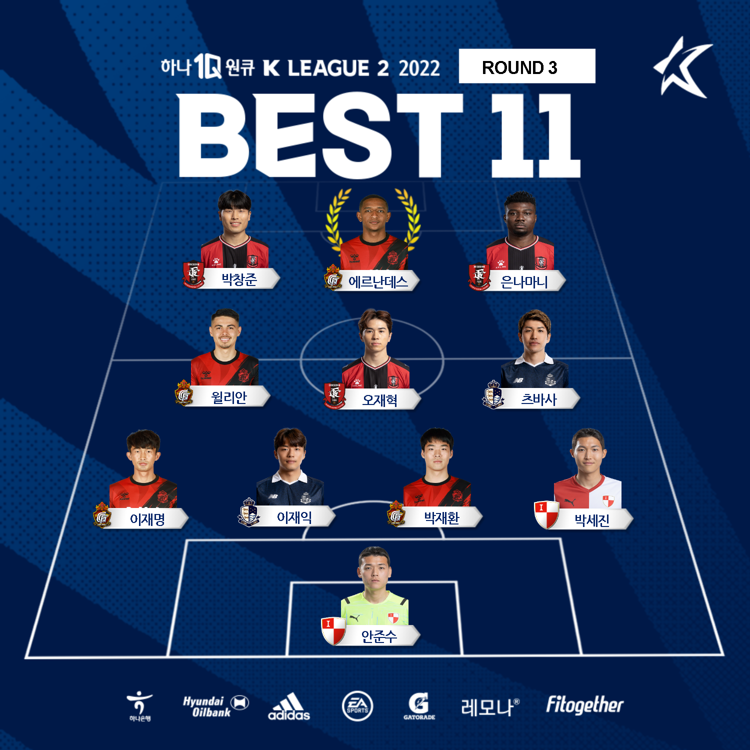 ‘하나원큐 K리그2 2022’ 3라운드 MVP는 경남 에르난데스다. 에르난데스는 같은 날 안양종합운동장에서 열린 안양과 경남의 경기에서 멀티 골을 넣으며 경남의 3-2 승리를 이끌었다. 이날 시즌 3호 골을 기록한 에르난데스는 K리그2 득점 단독 선두에 올랐다.