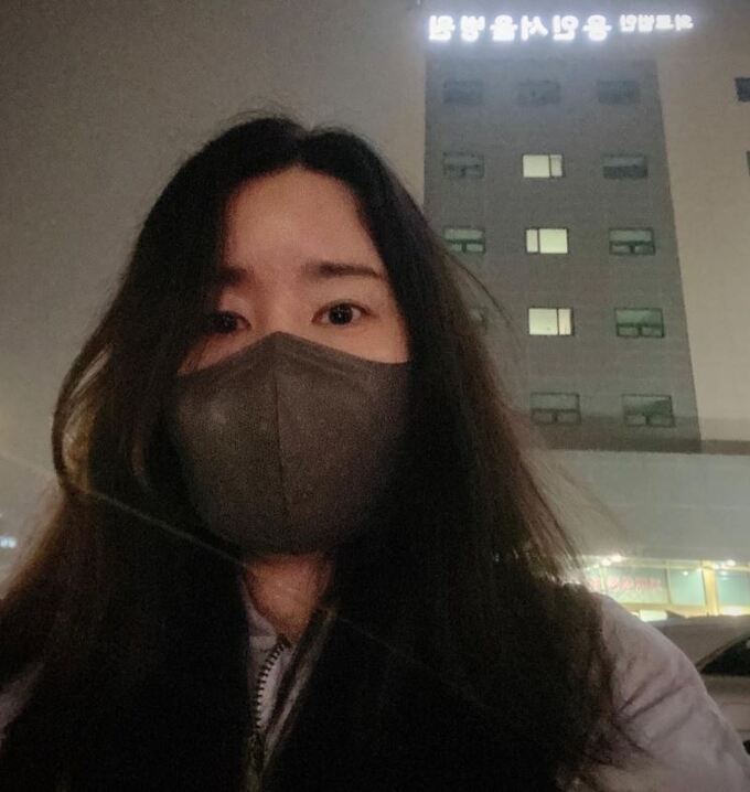 공개된 사진에는 경기도 용인시에 있는 한 병원에 방문해 코로나 19 검사를 받은 김지연의 모습이 담겼다.
