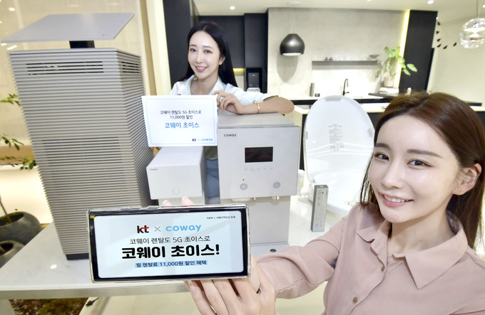 KT는 국내 대표 렌탈 기업인 코웨이와 손잡고 ‘5G 초이스’에 코웨이 렌탈료 할인 혜택을 제공하는 ‘코웨이 초이스’를 선보인다고 1일 밝혔다.