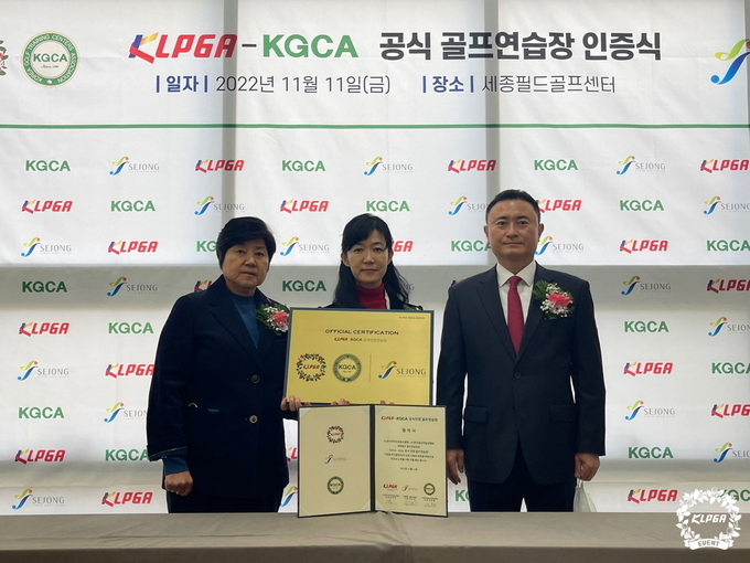 한국여자프로골프협회(이하 KLPGA)가 지난 11일 한국골프연습장협회(이하 KGCA)와 함께 시작한 ‘KLPGA-KGCA 공식 골프 연습장 인증사업’ 7호로 세종특별자치시에 위치한 세종필드 골프연습장을 선정해 인증식을 진행했다.