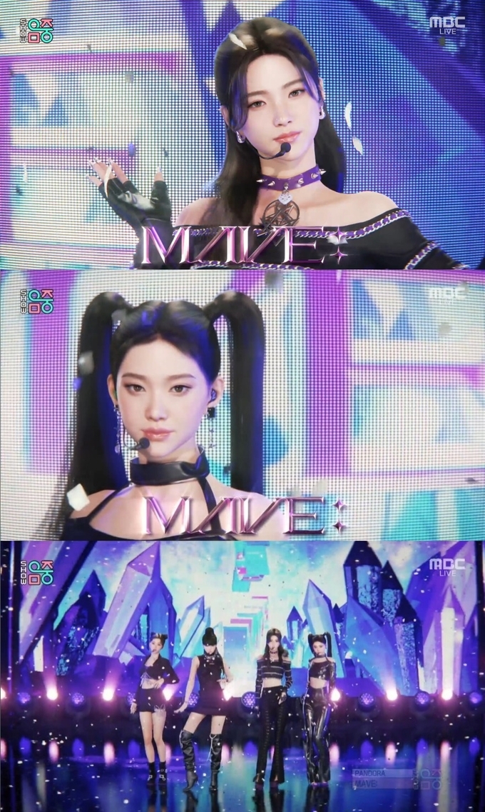 MAVE: (메이브, 시우·제나·타이라·마티)는 28일 방송된 MBC 음악 프로그램 ‘쇼! 음악중심’에 출연해 첫 번째 싱글 앨범 ‘PANDORA'S BOX’(판도라의 상자) 타이틀곡 ‘PANDORA'(판도라)’ 무대를 최초로 공개했다.