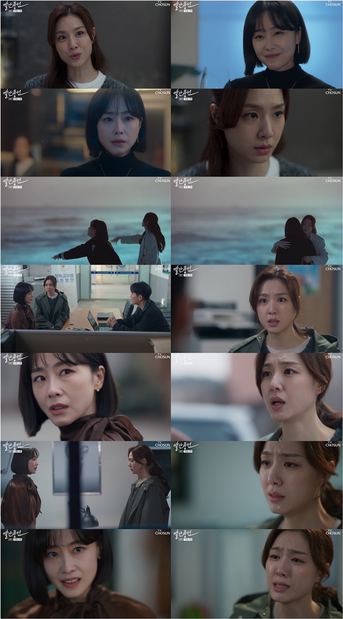 이후 조은강과 한바다는 술을 곁들여 수다를 떨었지만, 순간 웃음기를 거둔 한바다는 “왜 그랬니? 37년 그중 반 이상이 너랑 함께였어. 지금도 널 잃은 게 제일 가슴 아파”라며 금이 가버린 우정을 속상해했다. 조은강이 “한번 발동 걸리니 돌이킬 수 없었어. 미안해 바다야”라며 울컥한 채 여행 오는 내내 때리면 맞자라는 생각을 했다고 전하자, 한바다는 “걱정 마. 안 죽여. 나가자”라면서 밖으로 이끌었다. 일출 직전 아름다운 바닷가에 나란히 선 채 한바다와 조은강은 바다를 향해 우정 목걸이를 힘껏 내던졌다. 한바다는 “우리 우정은 여기까지. 지난 20년 깔끔하게 정리하자”라며 손을 내밀었고, 조은강은 한바다를 끌어안은 채 “넌 정말 내 인생 최고의 친구였어. 상처 줘서 미안해. 고마워. 영원히 잊지 않을게”라며 다시는 돌아오지 않을 뜨거운 우정에 눈물을 떨궜다.