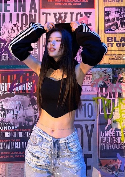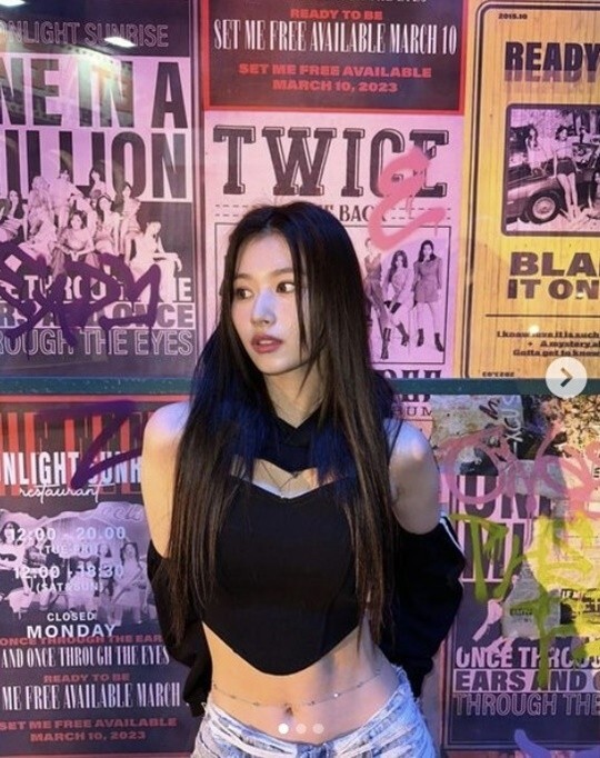 그룹 트와이스 사나가 늘씬한 허리라인이 돋보이는 몸매를 뽐냈다.