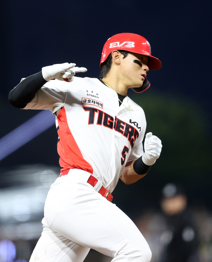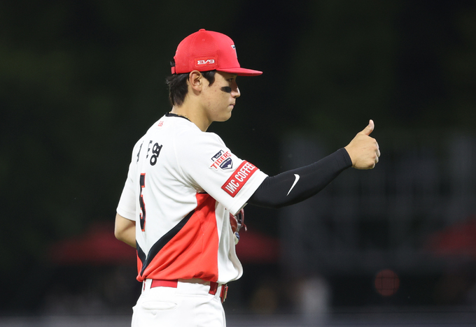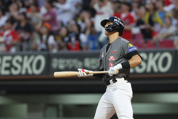 그때 김도영이 움직였다. 0-5로 뒤진 4회말이었다. 첫 타석 삼구삼진으로 고개를 떨궜던 그는 류현진에게 두 번 당하지 않았다. 이닝 첫 타자로 나서 1B1S 카운트에서 3구째 시속 125㎞ 체인지업을 공략했다. 힘찬 스윙에 걸린 이 타구는 비거리 130m를 기록하며 챔피언스필드 중앙 담장을 훌쩍 넘어갔다.