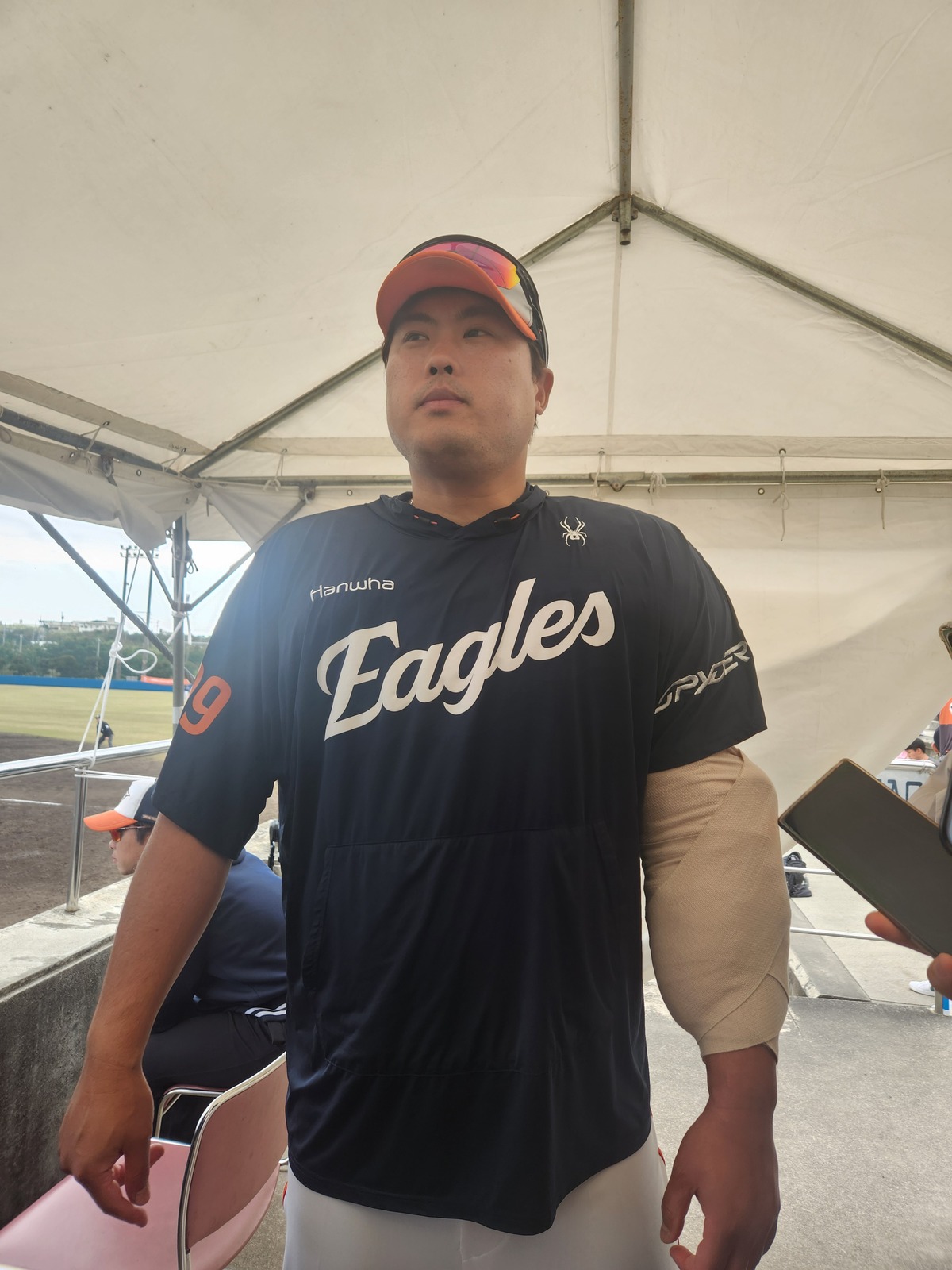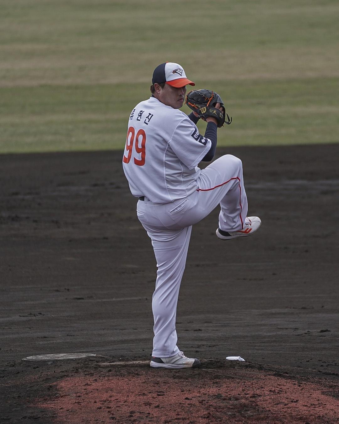 구속에 대한 미련을 버리려는 배경이다. 이날 24개의 공을 마운드에서 뿌린 가운데 패스트볼 (14구) 최고 구속은 시속 142㎞, 평균 140㎞를 마크했다. 그는 “올리고자 하는 스피드 목표는 없다. 오히려 생각한 것보다 힘을 안 썼는데 더 많이 나온 듯해서 그 점이 만족스럽다”고 바라봤다. 이외에도 그는 체인지업(8구)과 커브(2구)를 곁들이며 변화구 구사에도 문제가 없음을 확인했다. 등판을 마치고는 불펜에서 20구를 더 던지며 추가로 몸을 끌어올리기도 했다.