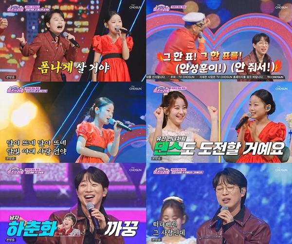 1:1 상황에서 정슬의 지목을 받은 안성훈은 김홍남과 박광현에게 개인기 평가를 받게 됐다. 안경을 벗고 하춘화 성대모사를 선보인 안성훈의 개인기에 김홍남은 100점 만점에 2점을 주며 웃음을 유발했다. 이어 나미의 '미움인지 그리움인지'로 대결을 펼친 안성훈은 곡 특유의 고독한 분위기를 완벽하게 살린 것은 물론 매력적인 보이스로 곡을 재해석, 듣는 이들을 감상에 젖게 했다.