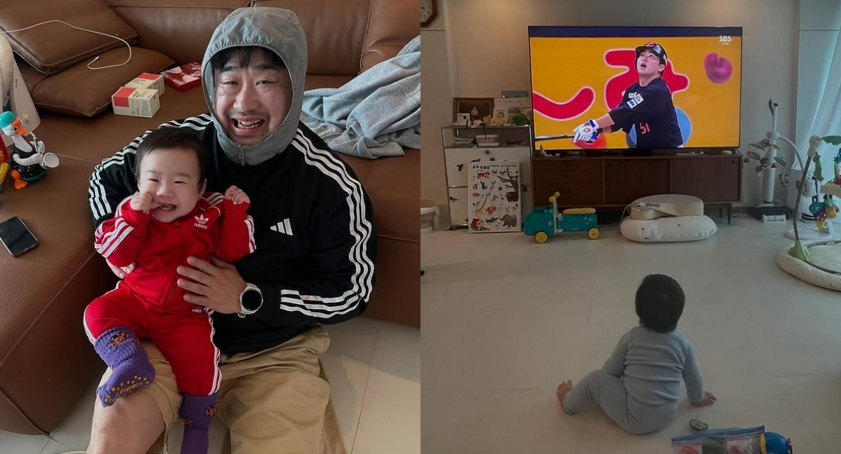 지난 10일 강재준은 자신의 인스타그램에 아들 현조의 모습이 담긴 사진을 한 장 올렸다. 사진 속 현조는 TV로 중계되는 한화 이글의 야구 경기를 지켜보고 있는 모습이다.