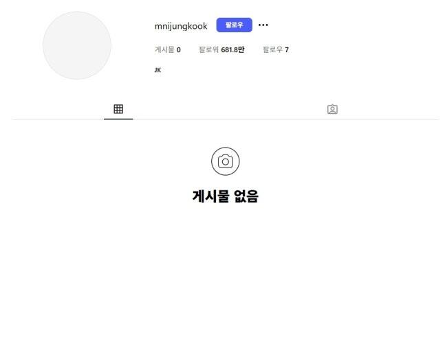 ◆ 정국, 새 SNS 개설 팔로워 680만명·팔로우 7명