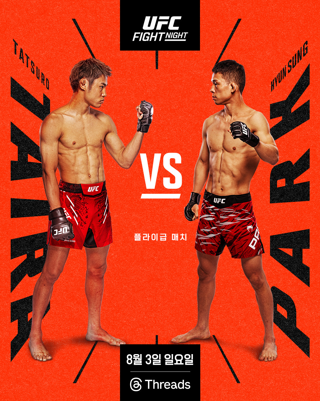 한편 ‘UFC 파이트 나이트: 타이라 vs 박현성’ 메인카드는 8월3일 오전 10시부터 tvN SPORTS와 온라인동영상서비스(OTT) 티빙(TVING)을 통해 중계된다.