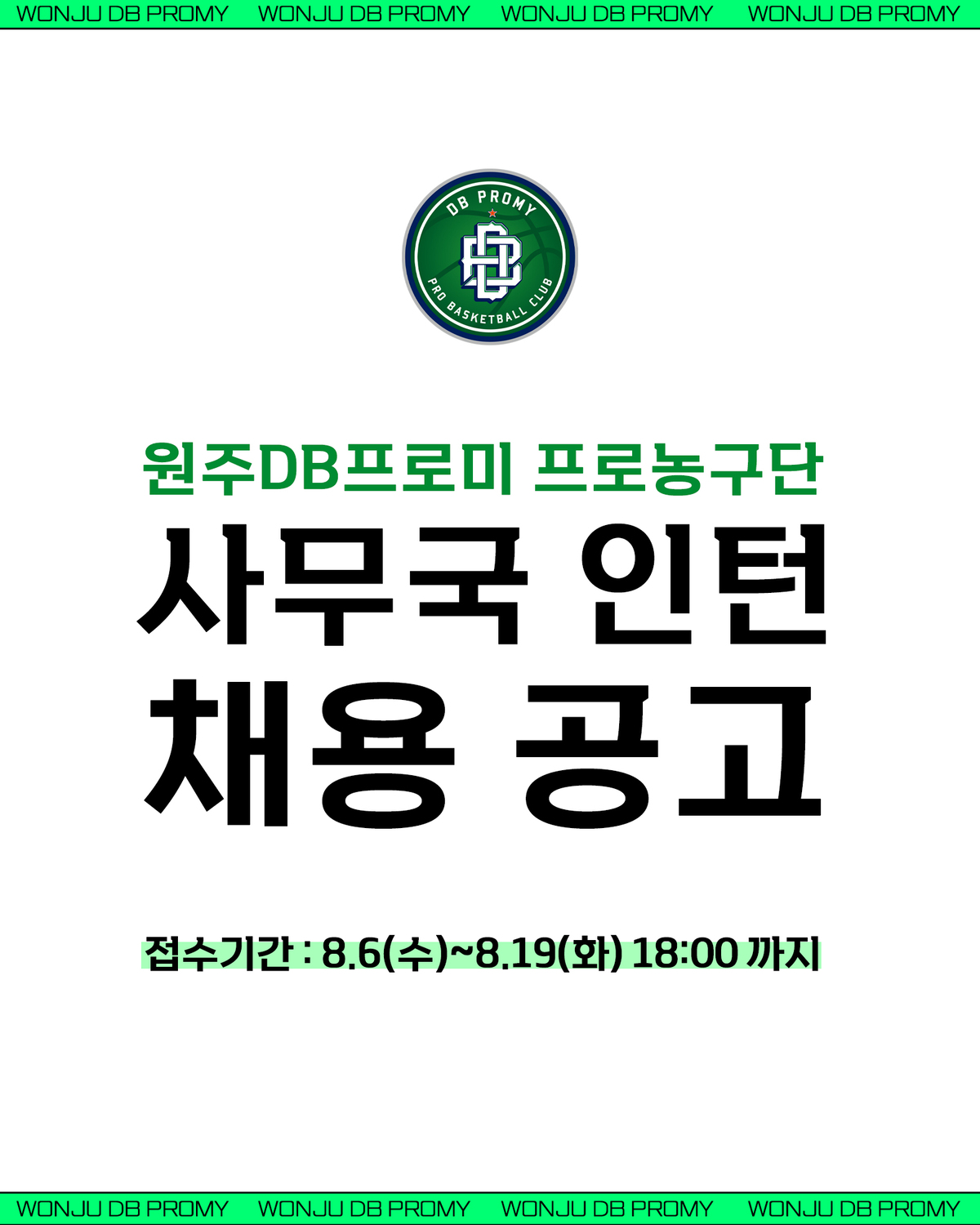 프로농구 DB가 2025∼2026시즌 동안 함께할 인턴사원을 채용한다.
