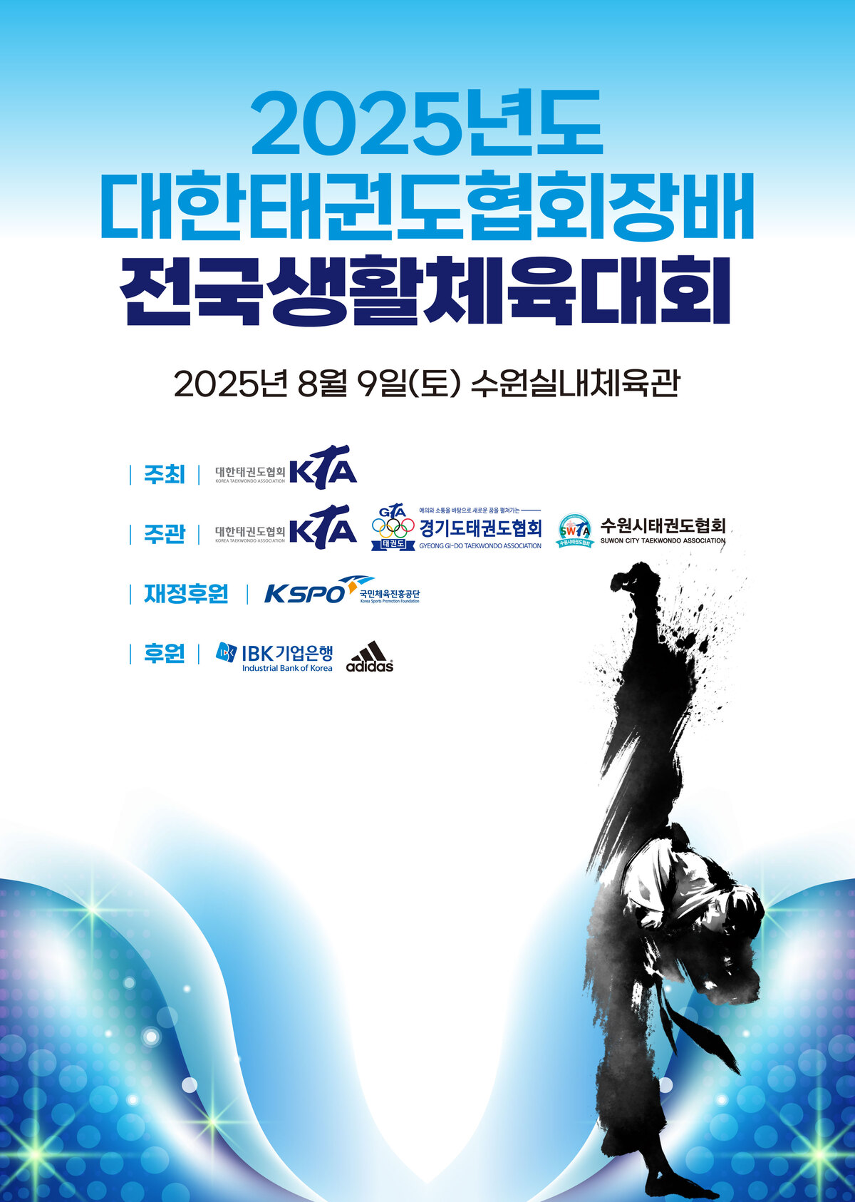 국내 태권도 생활체육인의 축제인 ‘2025년도 대한태권도협회장배 전국생활체육태권도대회’가 오는 9일 경기도 수원실내체육관에서 개최된다. 이번 대회에는 전국에서 1696명의 생활체육 태권도 동호인이 참가, 갈고닦은 기량을 선보이며 선의의 경쟁을 통한 우정과 화합을 다질 것으로 기대된다.