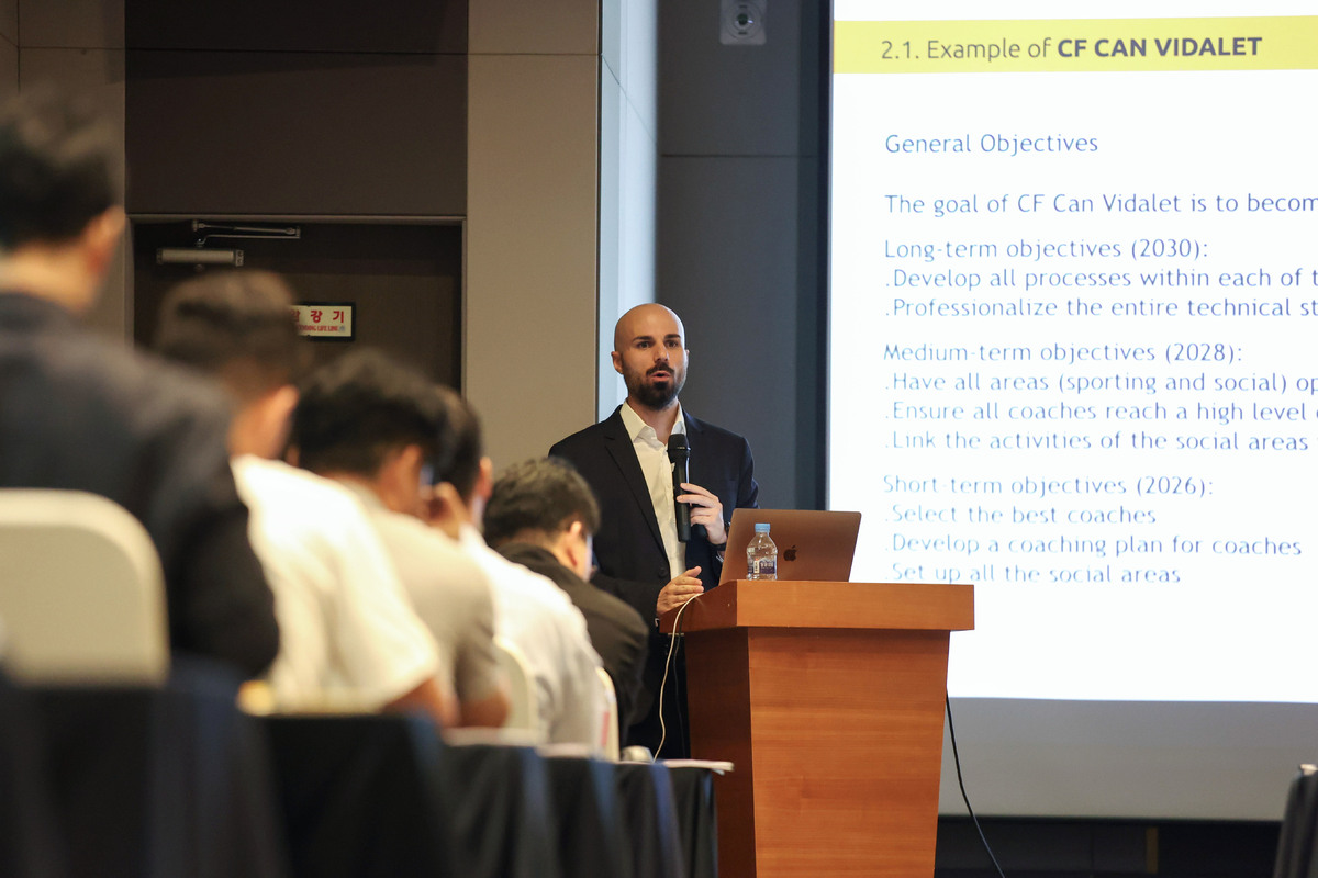 줄리안은 이번 세미나에서 스페인 축구 코칭 아카데미 Soccer Services Barcelona가 개발한 자체 선수 육성 방법론을 기반으로 ▲클럽 전략 수립 ▲게임 모델 구축 ▲훈련 방법론 ▲선수 스카우팅 ▲클럽 문화 형성 등 테크니컬 디렉터 역할 수행에 필요한 핵심 역량에 대해 강의했다.