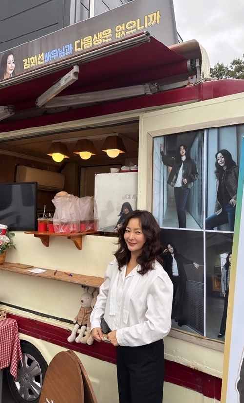 사진에는 김희선이 자신이 모델로 활동 중인 브랜드에서 보낸 커피차 앞에서 인증 사진을 남기고 있는 모습이 담겨 눈길을 끌었다. 커피차에는 ‘김희선 배우님과 다음 생은 없으니까, 모든 스태프 배우분들을 응원합니다!’라는 응원 문구가 적혔다.