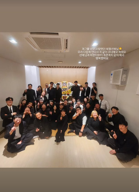 공개된 사진에는 검은색 의상을 갖춰 입은 동료 코미디언들이 고인의 영정 앞에서 밝은 미소를 짓고 있는 모습이 담겨 있다. 이는 갑작스러운 비보 속에서도 고인과의 추억을 기리며 정세협을 기억하고자 하는 동료들의 애틋한 마음을 엿볼 수 있게 한다.