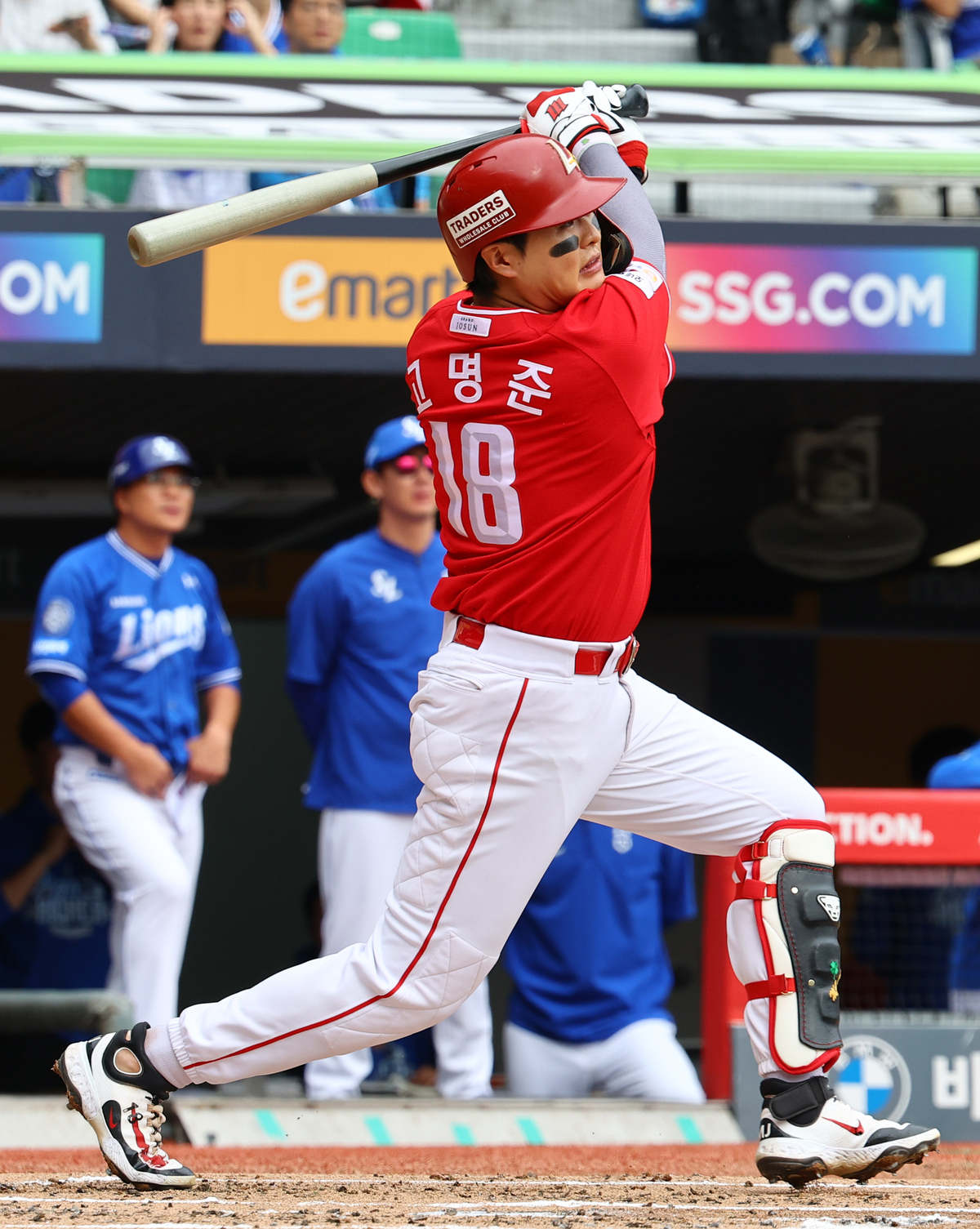 0-0이 이어지던 2회말이었다. 삼성 선발 헤르손 가라비토를 이번 가을 처음으로 마주했다. 1아웃 주자 없이 타석에 선 고명준은 가라비토의 시속 140㎞의 초구 슬라이더를 곧장 맞받아쳤다. 경기장 중앙을 반으로 가르며 날아간 타구는 그대로 중앙 담장을 넘었다. 비거리 125m가 찍힌 큼지막한 홈런이었다.