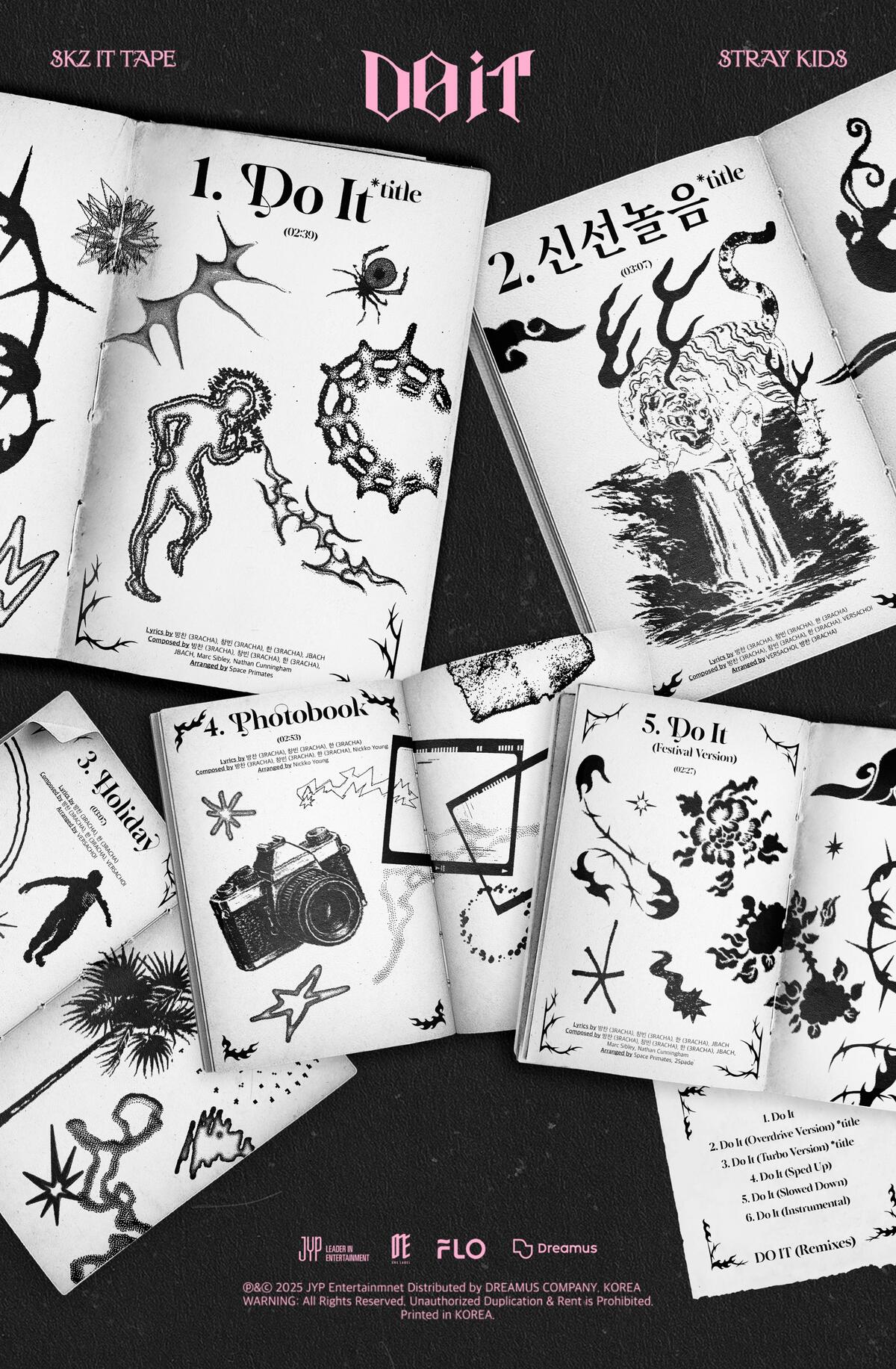 JYP엔터테인먼트는 20일 오후 공식 SNS 채널에 트랙리스트 이미지를 게재하고 신보를 향한 기대감을 더했다. 이에 따르면 스트레이 키즈는 더블 타이틀곡 ‘두 잇’과 ‘신선놀음’을 필두로 ‘홀리데이(Holiday)’, ‘포토북(Photobook)’, ‘두 잇’ 페스티벌 버전까지 총 5곡의 신곡을 발표한다. 이번에도 그룹 내 프로듀싱 팀 쓰리라차(3RACHA)의 방찬, 창빈, 한이 전곡 작업에 직접 참여했다.