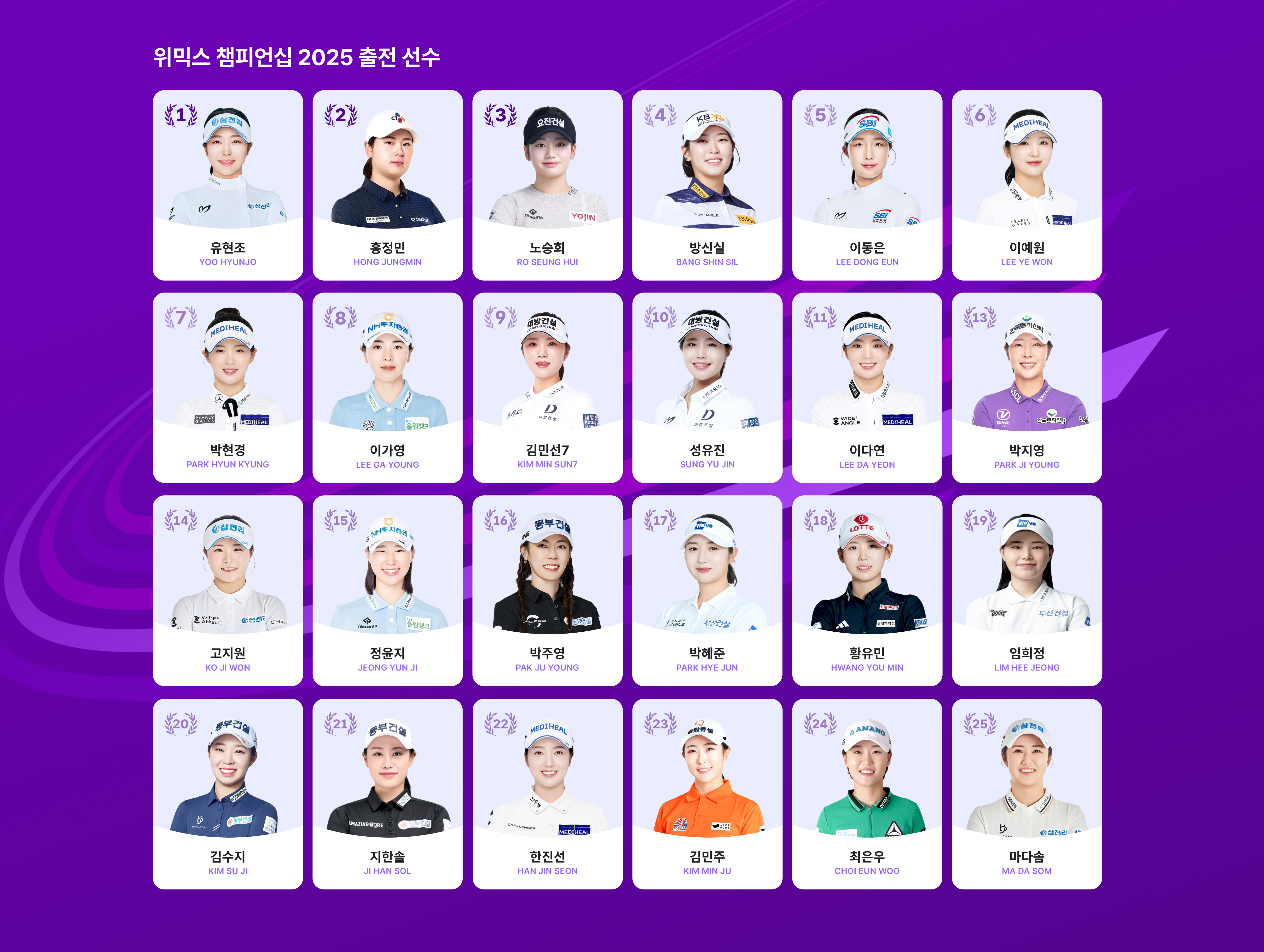 유현조, 지한솔, 이동은, 김민선7, 박주영도 지난해에 이어 2년 연속 출전권을 확보했다. 특히, 유현조는 지난 9월 7일 KB금융 스타챔피언십 우승 이후부터 대보 하우스디 챔피언십까지 위믹스 포인트 랭킹 1위 자리를 꾸준히 지켜내며, 일찌감치 KLPGA 위메이드 대상과 위믹스 포인트 랭킹 1위를 확정지었다. 위믹스 포인트 랭킹 1위에 오른 유현조에게는 상금 5000만원이 수여된다.