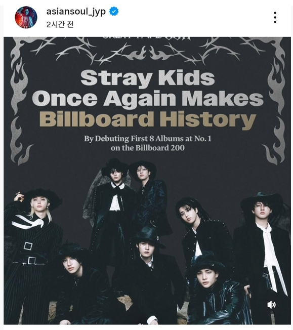 JYP엔터테인먼트의 대표 프로듀서이자 대통령 직속 대중문화교류위원회 공동위원장 박진영이 소속 그룹 스트레이 키즈의 빌보드 1위 달성을 축하했다.