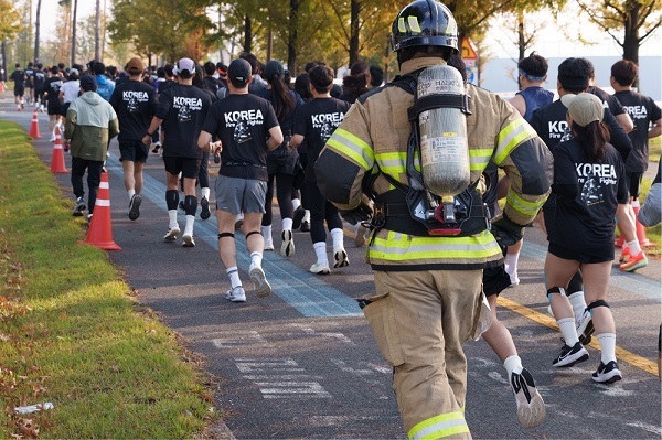 이날 현장에는 실제 임무 장비를 착용한 소방관 러너들의 모습이 특히 눈길을 끌었다. 방화복과 공기호흡기(SCBA), 산소통의 무게를 그대로 짊어진 채 코스를 이어가는 모습은 소방관들이 평소 마주하는 책임과 헌신을 그대로 담아내며 현장에 깊은 울림을 전했다. 또한 다수의 소방관 러너들이 압도적인 체력과 스피드로 빠른 기록을 달성하며 소방관의 높은 신체적 역량을 보여주었다.