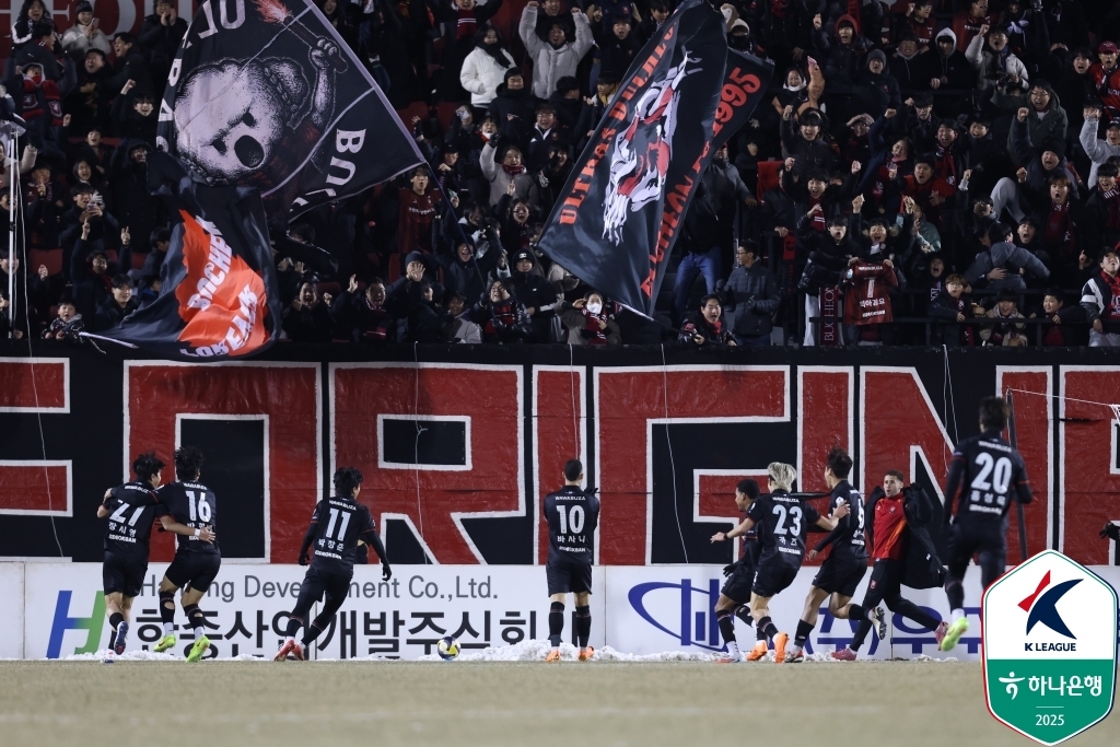 부천은 2007년 시민구단으로 창단됐다. 2013년 K리그2(당시 K리그 챌린지)에 참가한 이래 이날 처음 승강 PO를 밟았다. 부천은 이영민 감독의 지휘 아래 2025 하나은행 코리아컵 3라운드에서 제주(1-0 승), 16강에서 김천 상무(3-1 승)를 꺾으며 경쟁력을 보여주기도 했다. 만약 기세를 높여 2차전까지 잡는다면 창단 첫 승격의 기쁨을 누리게 된다.