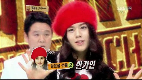 그중에 백미는 바로 남자 한가인으로 알려졌던 동준의 변신. 동준은 한가인 사진과 똑같은 모습으로 나타나 주변을 깜짝 놀라게 했다. 여장을 하고 텀블링과 초콜릿 복근을 과시해 남성미를 발산했다.