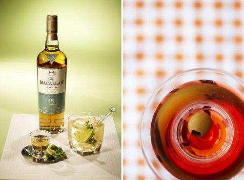 하이볼 글라스(보통 유리컵 크기의 잔)에 싱글몰트 2/3, 소다수 1/3을 넣은 뒤 얼음 몇 개와 라임 한 조각을 곁들이면 완성. 화인오크에서 숙성된 맥캘란 15년산은 소다수와 라임의 상큼함과 잘 어울린다.