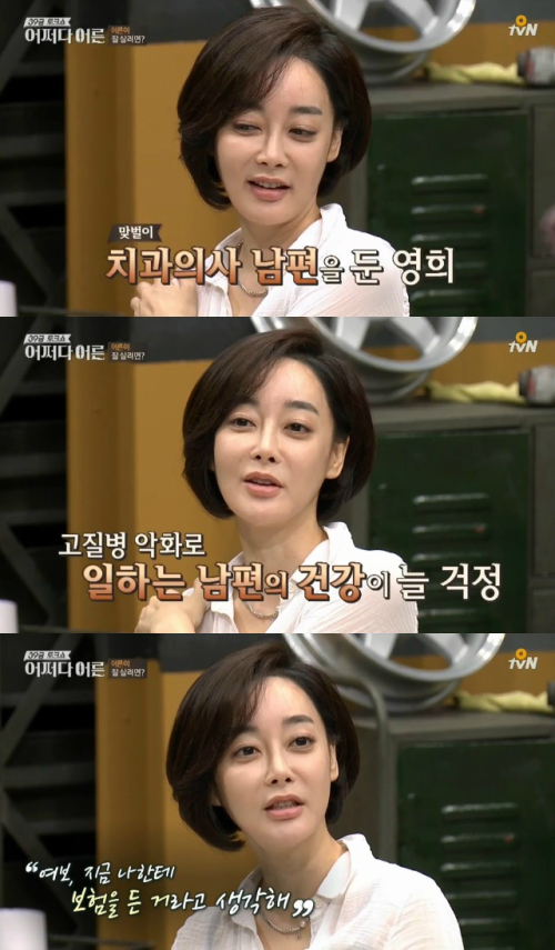 '어쩌다 어른'에 출연한 김혜은은 “우리 남편은 치과를 운영하는 치과 의사다. 평소 수술을 많이 하는 외과 쪽이다”고 운을 뗐다.