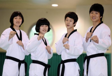 | 2008 베이징올림픽 태권도 남녀 국가대표인 황경선, 임수정, 손태진, 차동민(왼쪽부터). 스포츠월드DB |