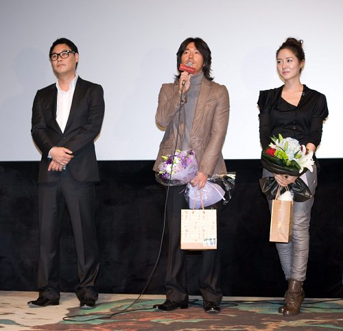 | ‘토끼와 리저드’의 무대인사를 하는 주지홍 감독(왼쪽부터) 장혁, 성유리, 롯데엔터테인먼트 제공 |