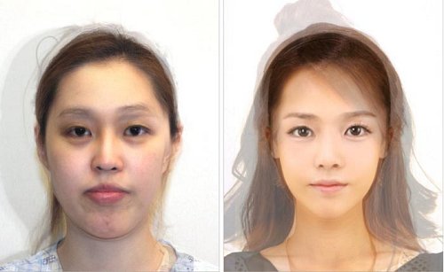 | 양악환자들의 수술 전 평균얼굴형(사진 왼쪽), 스마트양악수술 임상적용 환자들의 수술 후 평균얼굴형. <사진=페이스라인 성형외과 제공> |