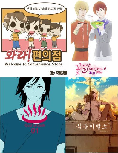 | 왼쪽 상단부터 시계 방향 ‘와라!편의점’ ‘꽃미남 라면가게’ ‘목욕의 신’ ‘삼봉이발소’ |