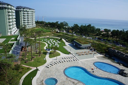 | 경포 바다와 맞닿은 라카이 샌드파인 리조트 전경 |