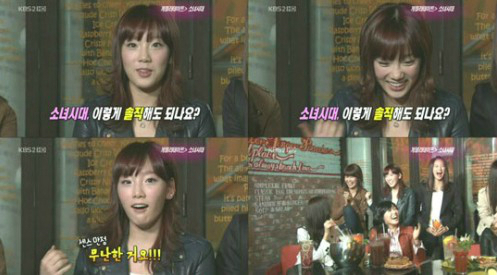 이날 수영은 태연에게 “오늘 속옷 색깔이 뭐냐?”고 질문을 해 모두를 당황케 했다.