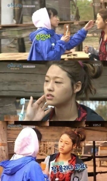 설현은 개미에 물려 얼굴이 퉁퉁 부어 평소와는 사뭇 다른 모습을 하고 있다.