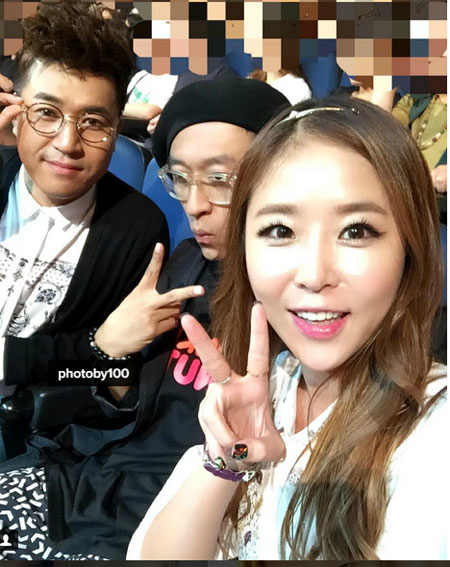 신지는 지난 4일 자신의 인스타그램을 통해 “우리는 코요태❤#김종민 #신지 #빽가 #히든싱어”라는 글과 함께 한 장의 사진을 공개했다.