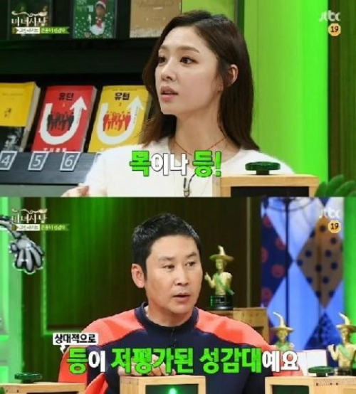 이를 들은 신동엽은 "등은 저평가된 성감대다"라고 맞장구를 쳤다.