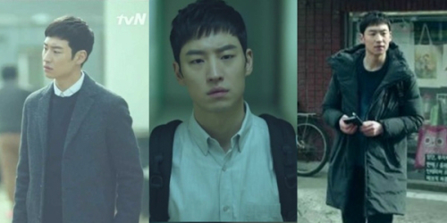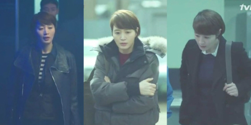 그는 주로 라이더 재킷이나 활동성이 높은 야상을 코디했다. 형사의 계급과 잘 어울리면서도 스타일 은 살아있는 모습으로 시선을 사로잡았다.