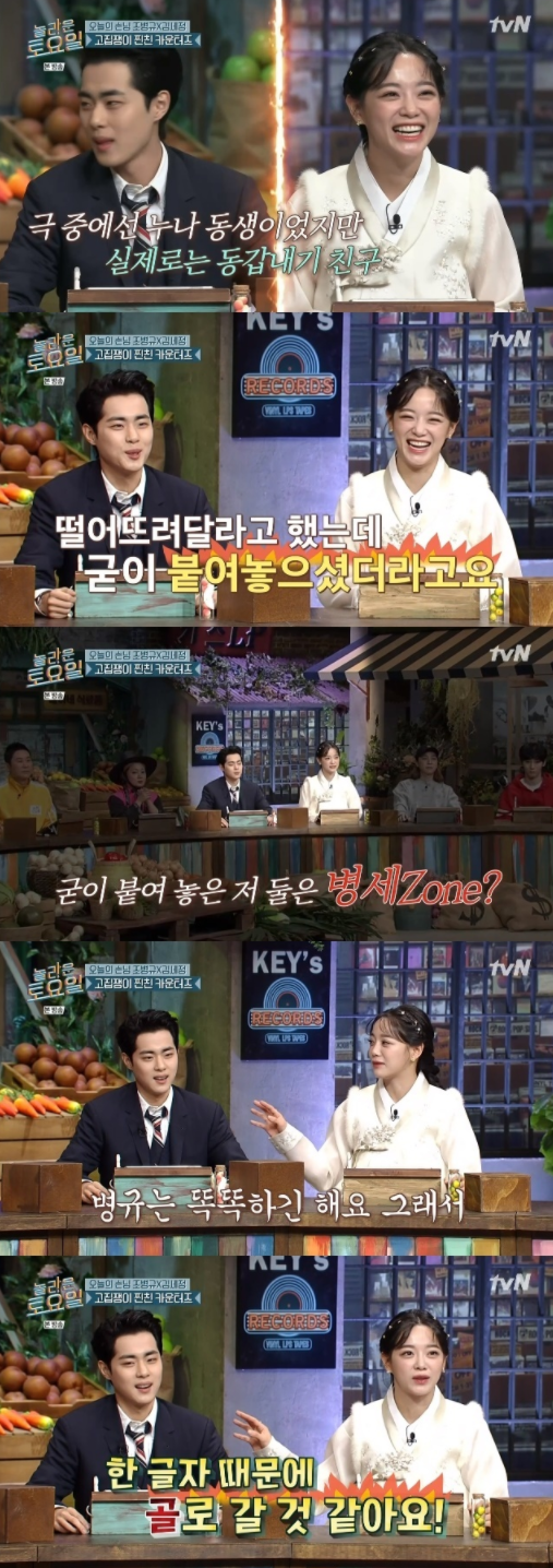 이날 김세정은 “‘경이로운 소문’이 성황리에 끝났다. 마무리하고 싶은데 조병규와 같이 나오니까 아직도 드라마를 찍고 있는 느낌이 든다”라며 “그만 보고 싶다”라고 말해 주위를 폭소케 했다. 이에 조병규 역시 “나도 썩 달갑지 않다”라며 “오늘도 떨어뜨려서 앉게 해달라고 했는데 굳이 붙여 놓으셨다”라고 응수해 웃음을 자아냈다.