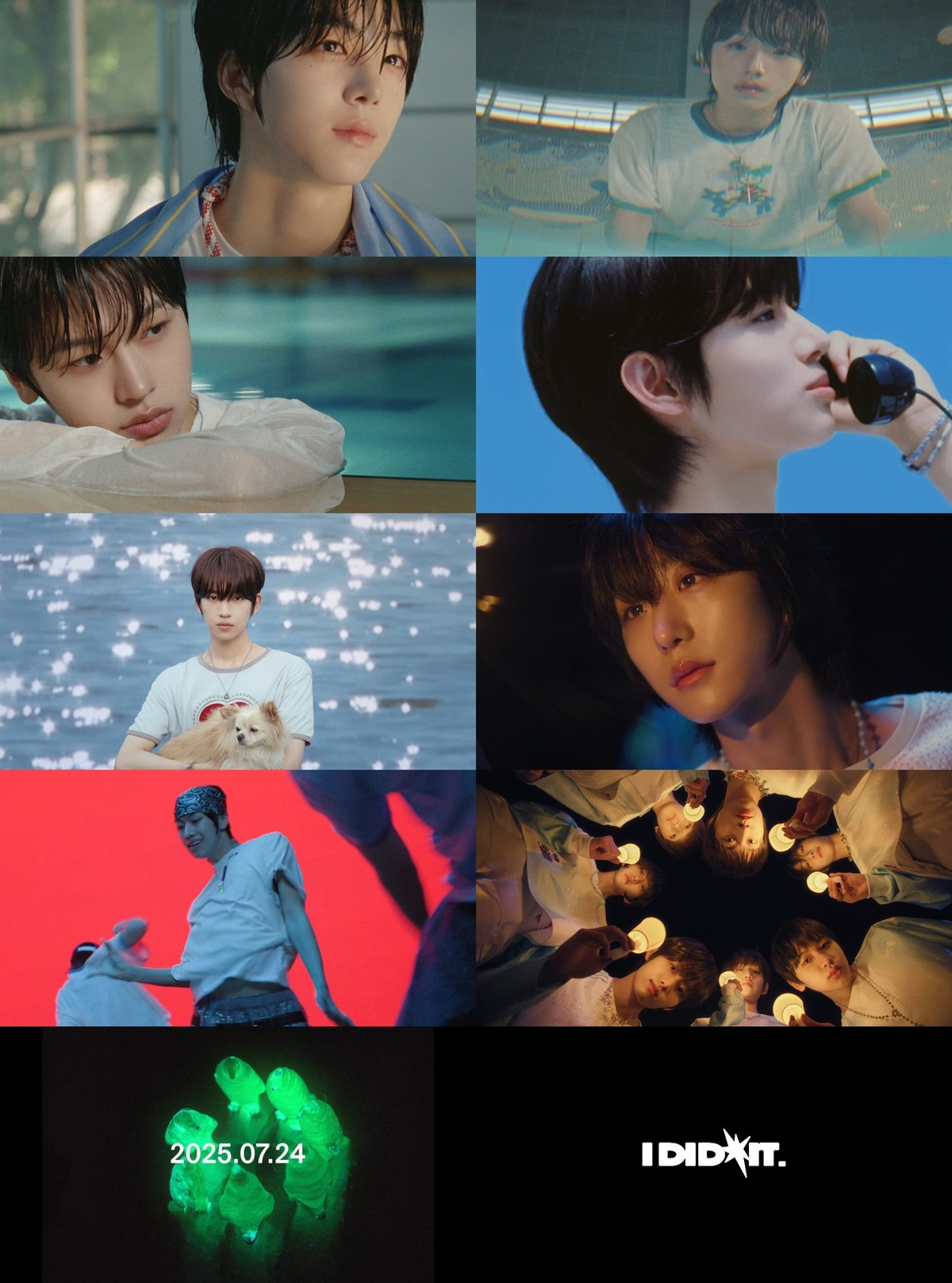 티저 영상은 얼음이 든 잔을 쥔 멤버 백준혁의 초근접 클로즈업 샷으로 강렬하게 시작되고 시원한 물을 들이키자 청량함이 파도처럼 밀려온다. 추유찬, 백준혁, 정세민이 함께하는 한여름 감성들은 수영장 안팎에서 화사한 미소로 피어나며 ‘어제 뭐 했어’라는 키워드를 비주얼적으로 보여준다.